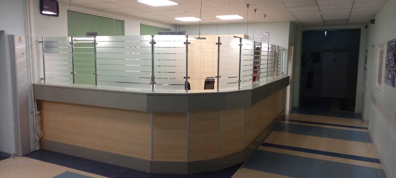 Lai uzlabotu darba vides drošību, higiēnas uzturēšanas iespējas un pacientu apkalpošanas kvalitāti, projekta ietvaros esošā aizsargplēve tika nomainīta pret kvalitatīvu, caurspīdīgu aizsargstiklu. Aizsargstikls ir viegli kopjams, izturīgs pret mehāniskiem bojājumiem un nodrošina ilgtermiņa aizsardzību gan darbiniekiem, gan pacientiem. Izvēlētais risinājums atbilst epidemioloģiskajām prasībām un darba vietas ergonomikas principiem, vienlaikus uzlabojot reģistratūras vizuālo un estētisko vidi.